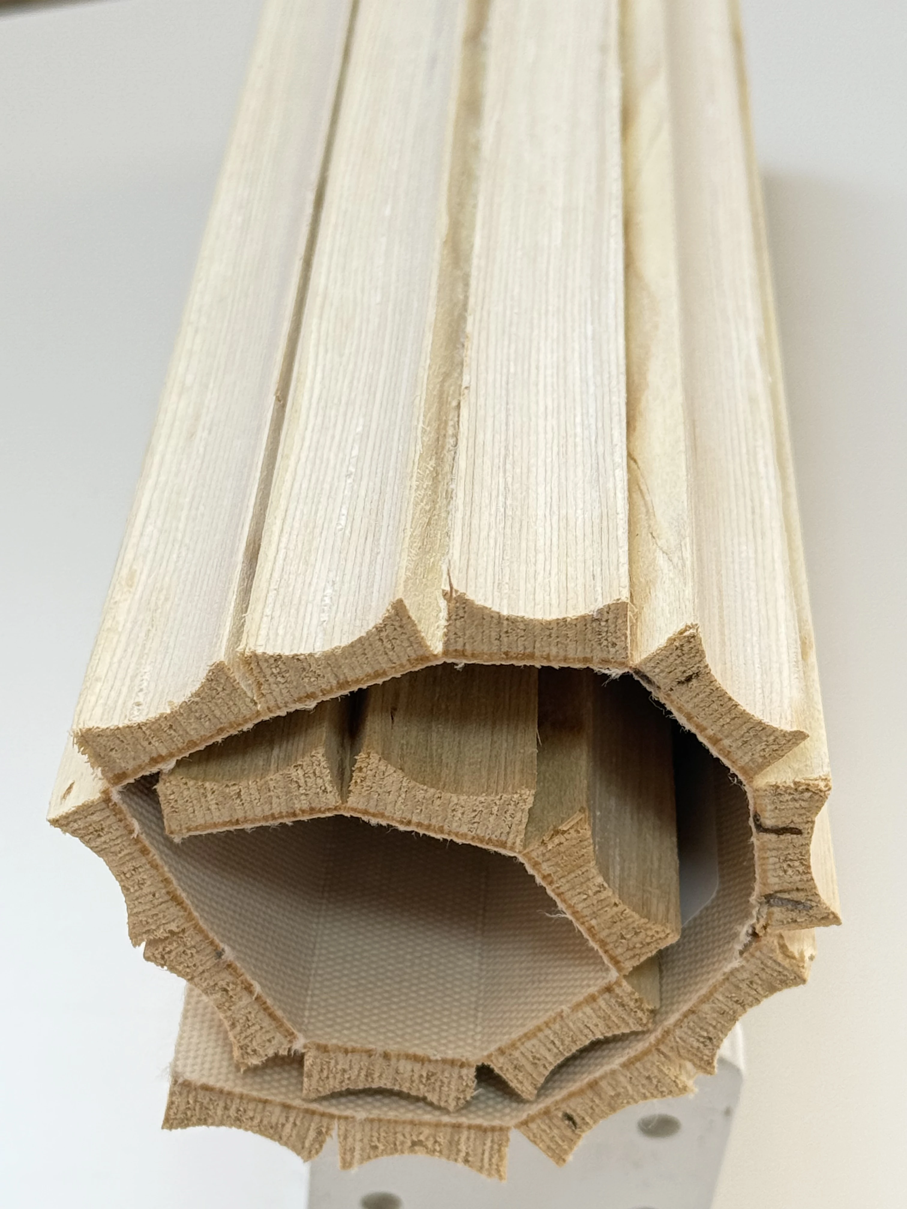 Woodpex Timber panrl is the only pre-finished flexible timber panel available in Australia. This eliminates the need for on-site sanding, lacquering, or joint finishing required by solid timber systems, resulting in significant labour, time, and cost savings on site. Panels are delivered ready for immediate installation, reducing project lead times and finishing trades coordination.